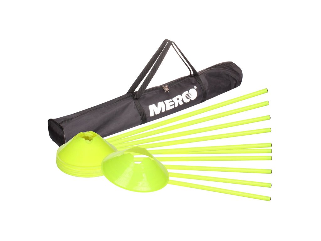 Obsahuje 10 lehkých PVC tyčí (délka 1 m) a 20 vytyčovacích met s otvorem, do kterého tyče jednoduše zasunete. Rychle tak postavíte překážky různých výšek – pro skoky, přeběhy i slalom. Díky odolné polyesterové tašce vše snadno přenesete a uskladníte mezi tréninky.