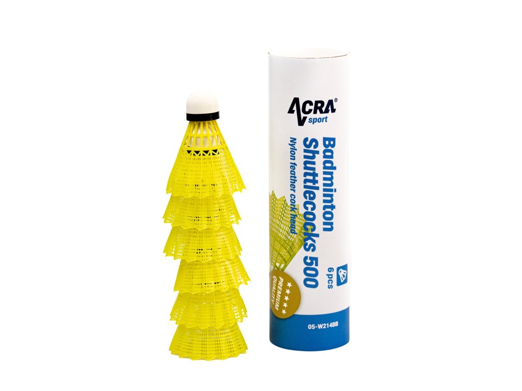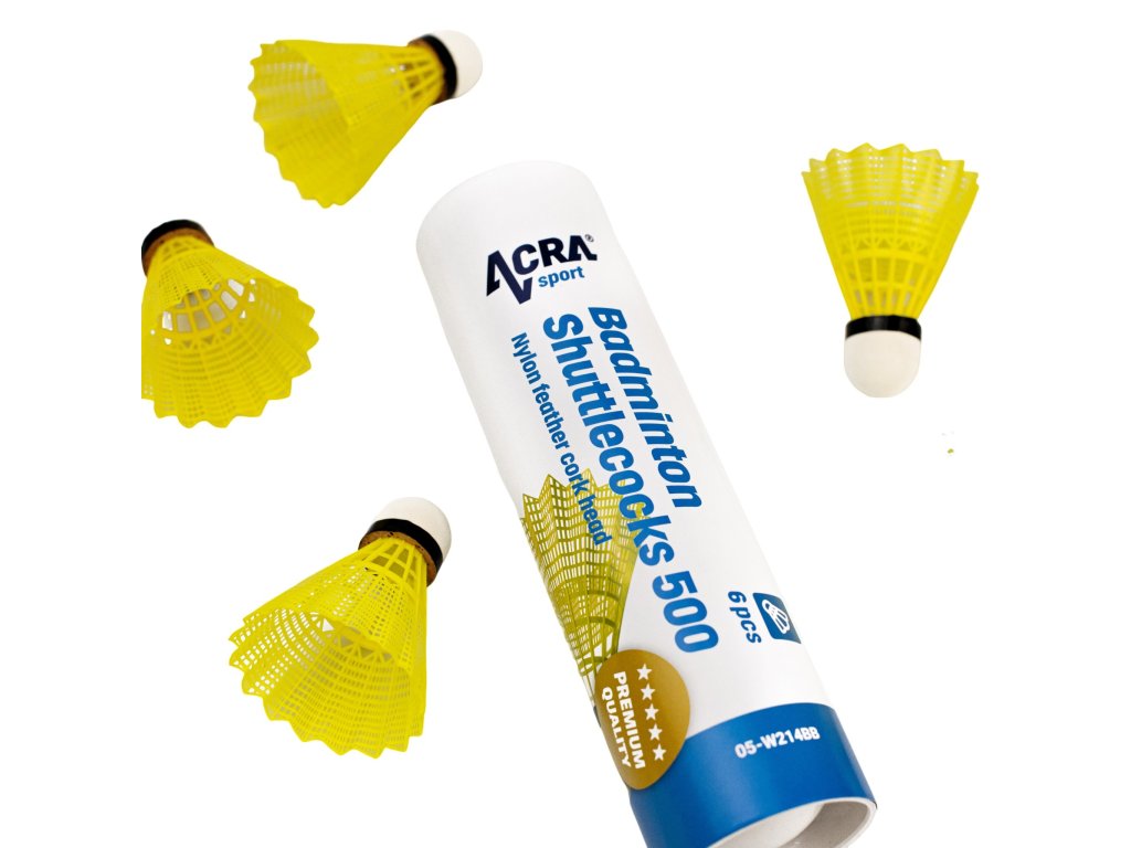 Badmintonové míčky Acra 500, 6 ks nylon v dóze