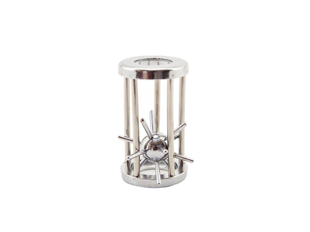 Má podobu kuličky s dlouhými ostny (ježek), která je uvnitř válcového pouzdra s různě velkými otvory (klec).