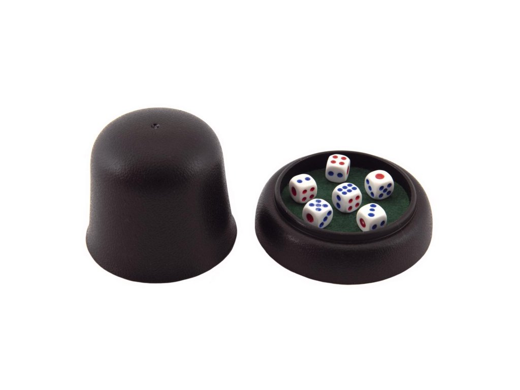 Hrací kostky s kalíškem. Oblíbená a jednoduchá hra s kostkami, kterou si vaše děti zamilují.