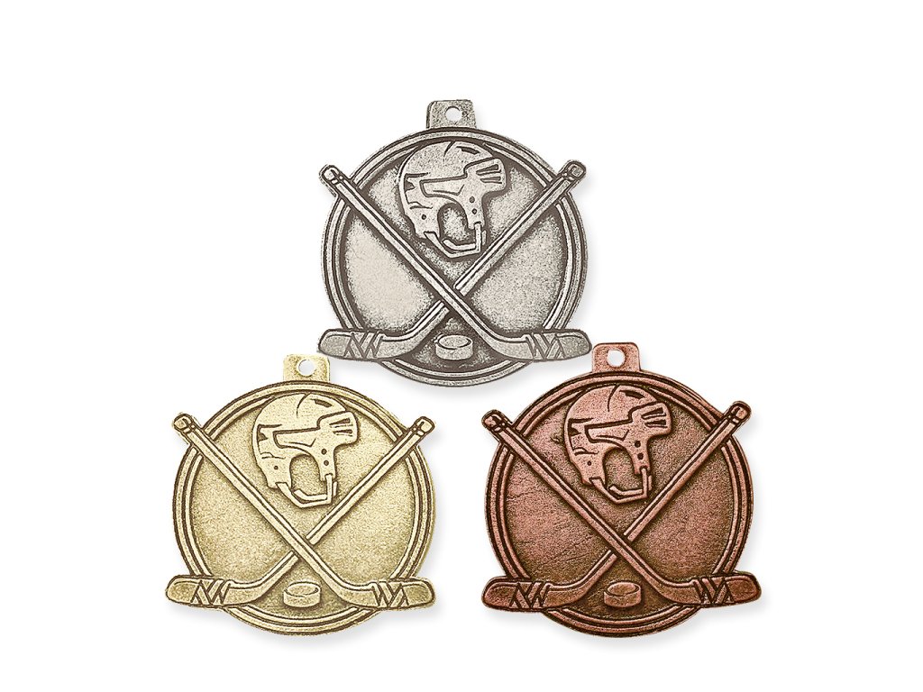 Parádní medaile speciálně pro hokejisty. Pro vítěze hokejových utkání v provedení zlato-stříbro-bronz.