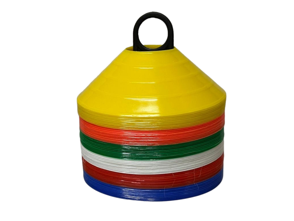 Sada 60 vytyčovacích met z měkčeného plastu se stojánkem pro jednodušší přenášení a snadné uskladnění. Plastové tréninkové kužely jsou vhodné pro označení terénu při hrách, kondičním cvičení a při agility tréninku.