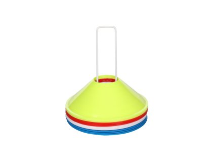 Tréninkové víceúčelové mety po 1 ks ve výrazných barvách se speciálními výřezy pro vytvoření překážkové dráhy v kombinaci s tyčkami.