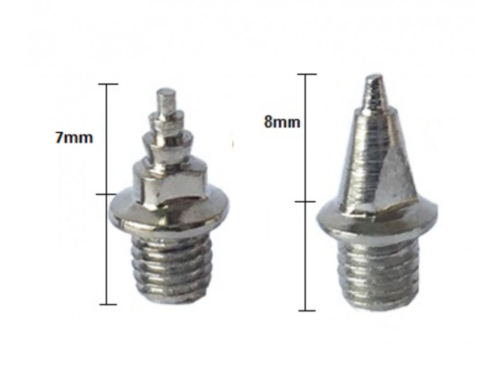 Hřeby jsou dostupné ve třech velikostech – 6 mm, 7 mm a 8 mm, takže si snadno zvolíte variantu podle typu tratě a podmínek závodu.