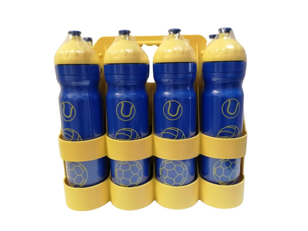 Nosič lahví + 8 lahví RB 1l, žluto-modré, žlutý nosič