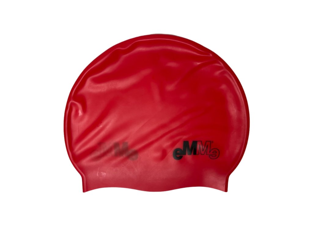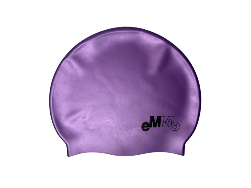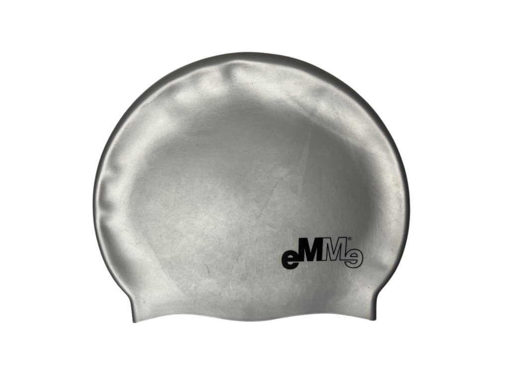 Plavecká čepička má na sobě logo Emme. Díky střihu částečně zakrývá i uši a nepropouští vodu.