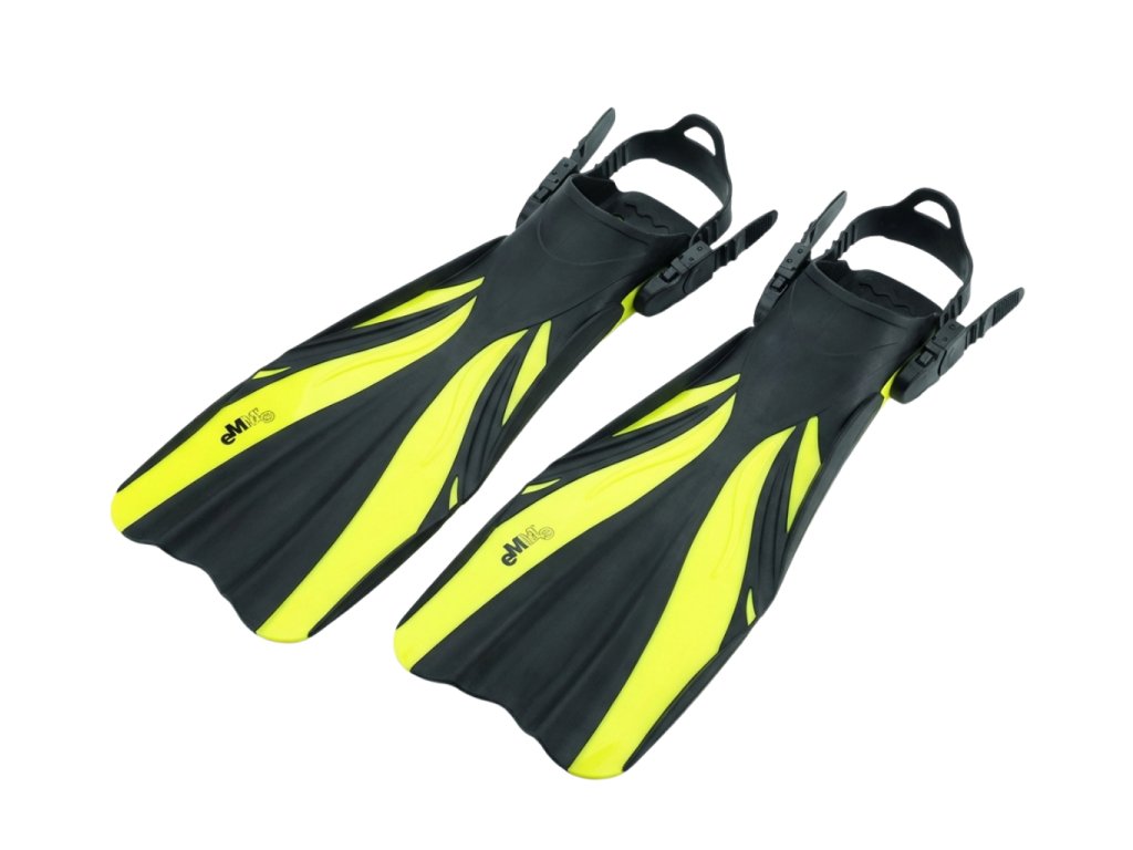 Potápěčské ploutve Emme Florida mají nastavitelnou velikost pomocí měkkého pásku a rychloupínacích přezek.