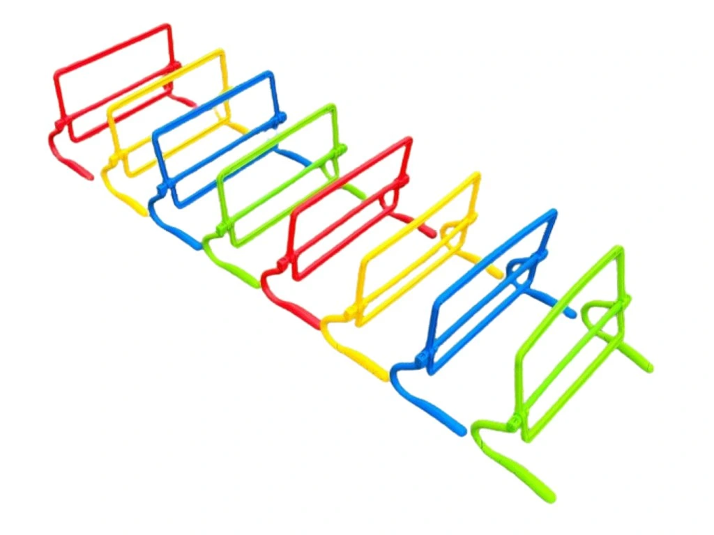 Sada osmi tréninkových univerzálních překážek s nastavitelnou výškou pro děti do školek, škol, oddílů nebo atletických přípravek pro všestranný rozvoj pohybových schopností a dovedností. Každá překážka umožňuje individuální nastavení výšky na 15, 23, 29 nebo 36cm. Materiál PVC zabrání možnému zranění při nárazu.