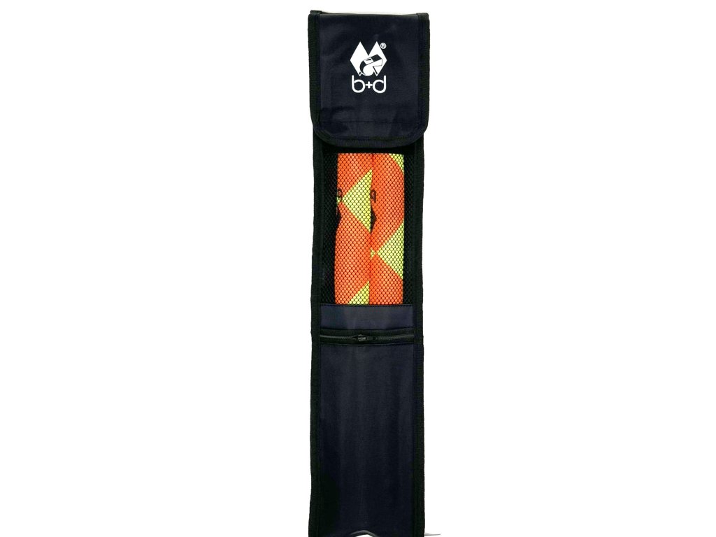 Pouzdro na ochranu praporku z nylonového plátna, se suchým zipem, síťovanou vložkou a další příhrádkou na zip (cca 53x12,5 cm) (dodáváno bez červených a žlutých karet), se 2 praporky.