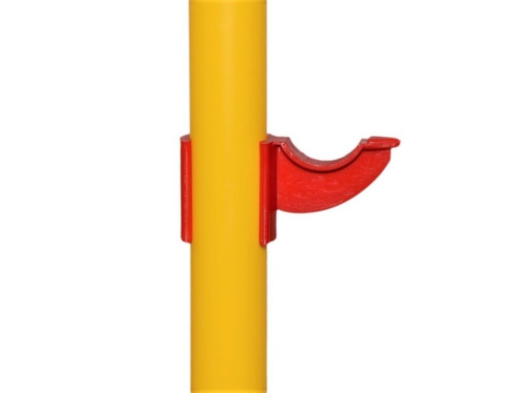 Pro spojení tyče průměru 25 mm a položení tyče. Tyč při kontaktu spadne, jako u skoku vysokého.