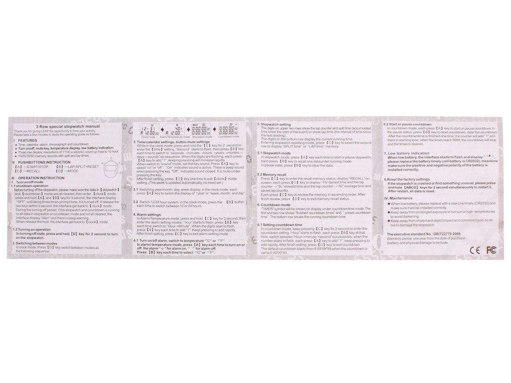 - třířádkový displej, rozlišení 1/100 za sekundu, počítání max. do 10 hodin