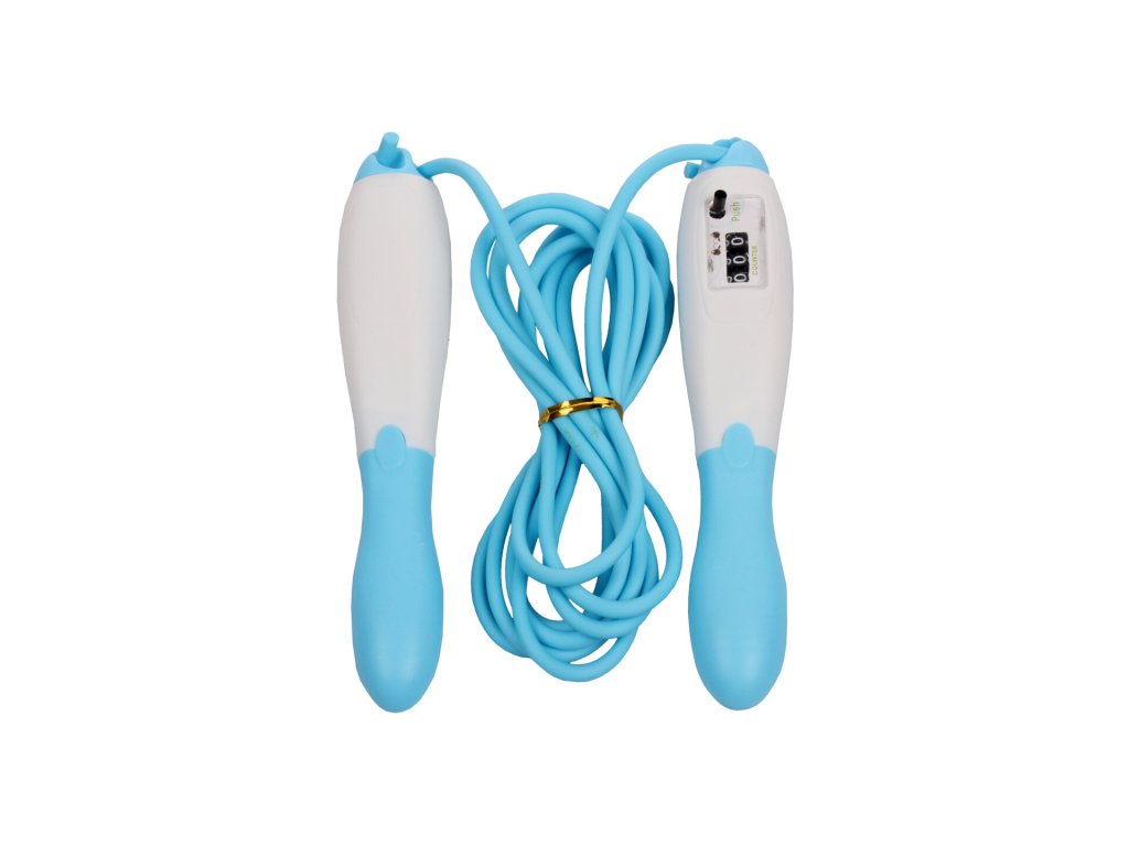 Švihadlo Jumppy s celkovou délkou 300 cm s PVC lanem (lehce nastavitelná délka) a s tvrdými plastovými rukojetěmi a počítadlem (délka rukojeti je 18 cm).