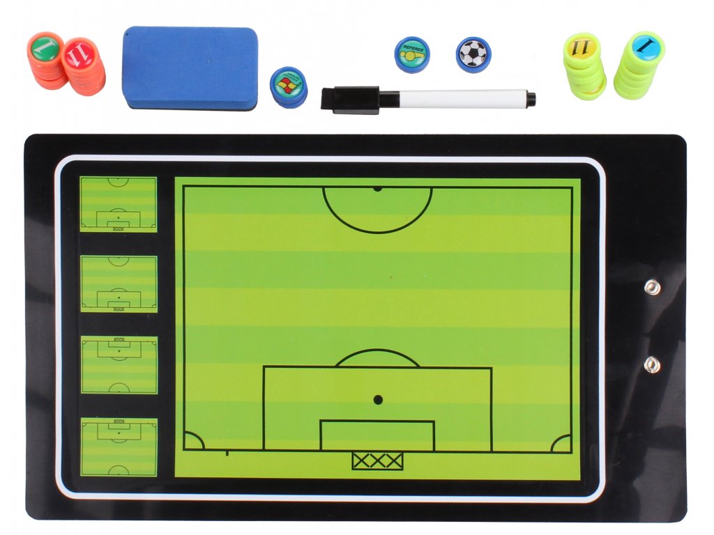 Trenérská tabule na fotbal je nezbytný doplněk každého fotbalového trenéra napříč všemi soutěžemi. Taktická fotbalová tabule je oboustranná magnetická deska s barevným provedením celého fotbalového hřiště na straně jedné a barevným provedením poloviny fotbalového hřiště na straně druhé a to včetně dalších čtyř miniatur.
